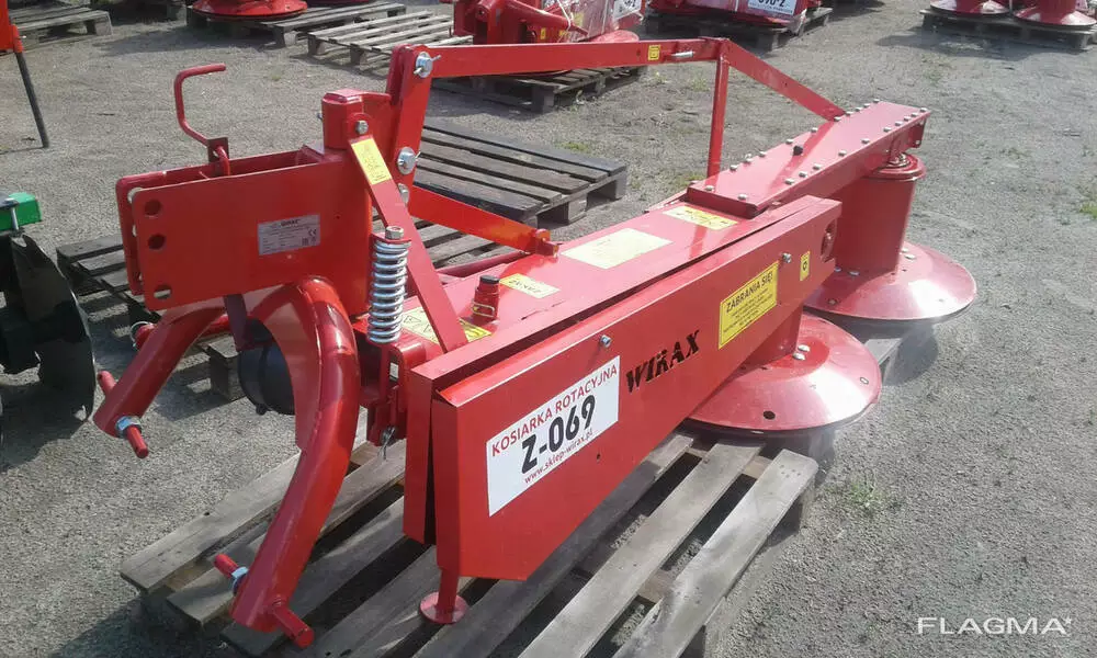 Роторная косилка Z-069/2 шириной захвата 1,85 м. пр-во Польша. для тракторов от 60 л.с. Очевидный плюс, перед аналогичными по стоимости сегментными однобрусными косилками то, что эта косилка роторная. Косилка предназначена для скашивания высокоурожайных трав. с укладыванием их в валок. Привод косилки осуществляется от карданной передачи ВОМ трактора. Косилка имеет упрощенную конструкцию, износостойкие детали, простая в обслуживании, что обеспечивает беспроблемную эксплуатацию на протяжении многих лет. Абсолютно все запчасти к ней есть в наличии на Украине.Чаще придется менять быстроизнашиваемые узлы, такие как ножи и ремни, поэтому мы советуем своим клиентам при покупке запастись еще одним комплектом. Невысокая цена и оптимальный набор характеристик позволяет ей пользоваться высоким спросом у фермеров по всей Украине. Не большой размер косилки позволяет вместить ее при транспортировке в автомобильный прицеп, или если Вы из другого региона отправить вам ее курьерскими службами.