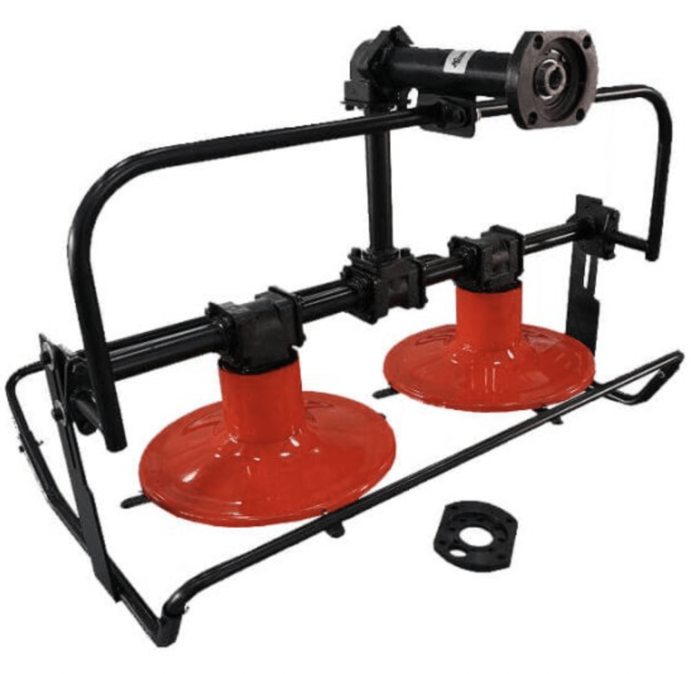 Опис: Косарка роторна ШиП КР-02 ідеально підходить для очищення території від трави та залишків врожаю. Вона обладнана двома роторами, кожен з яких оснащений чотирма ножами. Плаваючі ножі ефективно зрізають траву, яка потім складається в ряд позаду мотоблока. Косарка легко встановлюється на мотоблок ззаду та працює від валу відбору потужності (ВОМ) мотоблока.