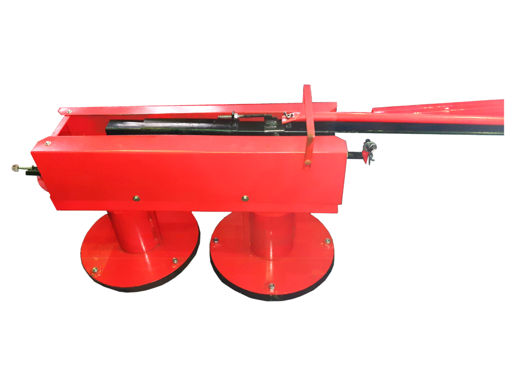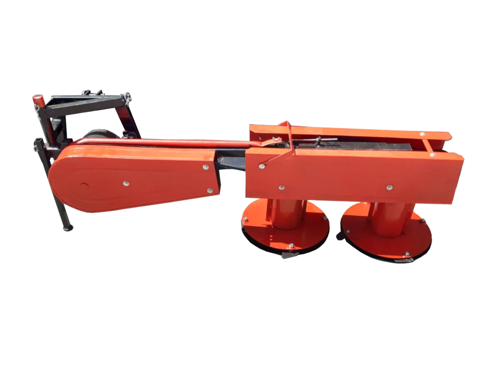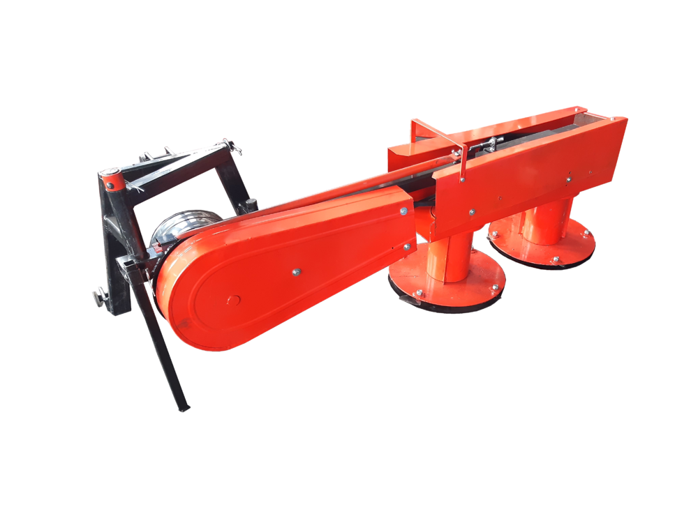 Косарка приєднується до мінітрактора за допомогою триточкової навісної системи ззаду, і підходить для техніки потужністю від 12 до 18 к.с. Вона запускається від ВОМ техніки через шпонку та ремінний привід, розташований у відкритому металевому коробі. Привідний механізм оснащений спеціальною пружиною, що забезпечує плавну та безпечну роботу агрегату. Роторні диски оснащені трьома сталевими ножами на кожному роторі, які обертаються з високою швидкістю, забезпечуючи максимальну продуктивність до 0,55 га/год на складних ділянках.