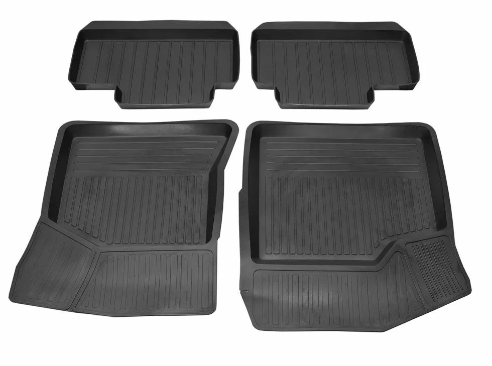 Коврики в салон  изготовлены из высококачественного полиуретана повышенной прочности. Борт данных ковров имеет среднюю высоту в размере не ниже 25 мм,  что при неоднократных экспериментах доказало свою практичность. К тому же борт имеет ступенчатые ребра жесткости, что не позволяет ему изменять форму своей геометрии тем самым уродовать подножное пространство причудливыми формами. Усиленные борта позволяют автоковрикам сохранять свою форму и эластичность, как при низких температурах, так и при высоких. Также там, где борт не прикасается к обшивке пола, создается дополнительное шаровидное усиление, которое не позволяет ни при каких условиях сломаться борту.  На каждом ковре, если это предусмотрено автопроизводителем,  имеются так называемые «капюшоны», которые накрывают крепеж для фиксации ковра. Он не является отверстиями, дабы избежать проникновения загрязнения на заводской ковролин. (В зависимости от модели автомобиля конфигурация ковриков может отличаться!)  Пассажирский коврик, ко всему сказанному, имеет специальный увеличенный язычок, который абсолютно закрывает подножное пространство переднего пассажира, вплоть до колесной арки. Задние коврики, также как и передние, идеально прилегают к ошибке пола и максимально на 100% защищают подножное пространство. Еще одной особенностью ковриков является наличие в комплекте так называемой «перемычки», которая служит закрытием возвышенности между задними ковриками. Многие автолюбители знаю, что эта возвышенность на заднем ряду является уязвимым местом в поддержание чистоты салона, особенно когда там сидят дети.