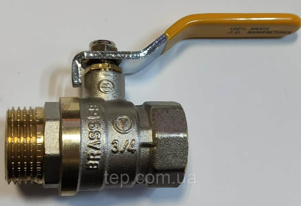 Кран шаровый J.G. В 3/4" - Н 3/4" с ручкой (желтая) DN20. Латунь