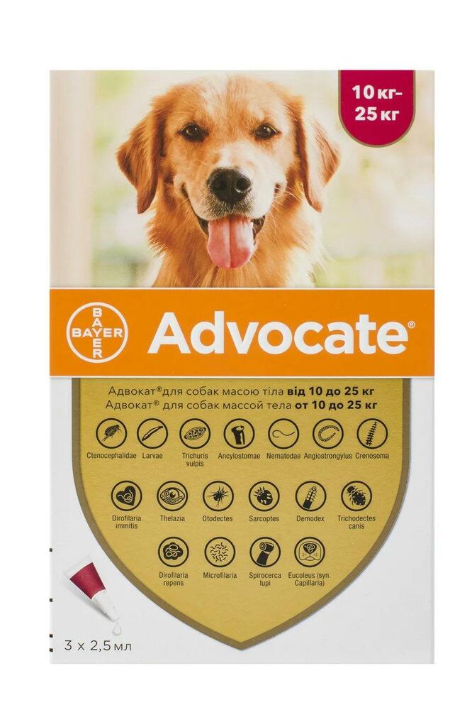 Краплі Адвокат для собак вагою від 10 до 25 кг (2,5 мл 1 піпетка) BAYER (термін до 09.2025)