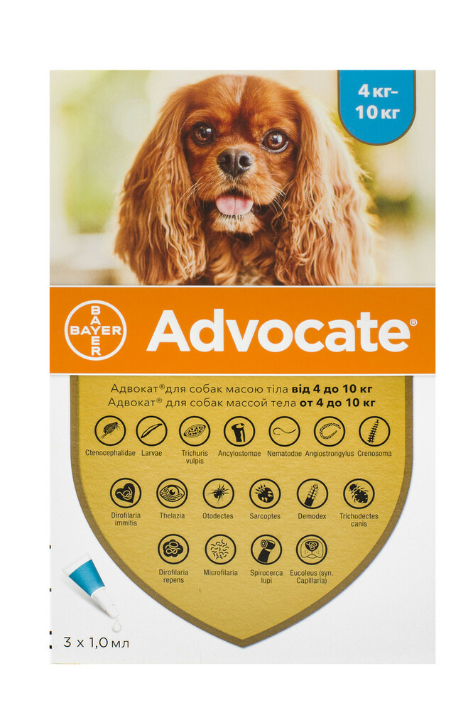 Краплі Адвокат собак від 4 до 10 кг №1 BAYER - золотий стандарт контролю паразитів у собак.