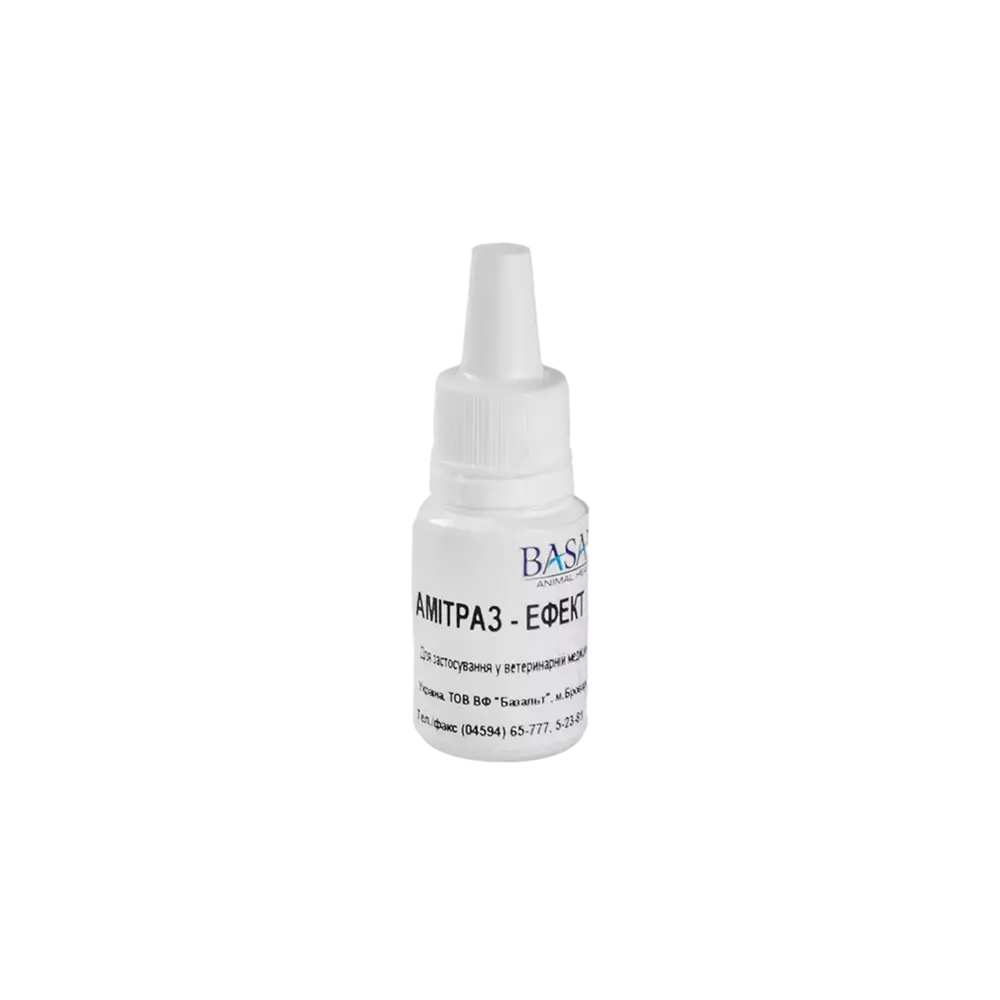 Склад: Амітразин 0.25 мг метилурацил 25 мг і димексид. Є маслянистою рідиною жовтуватого кольору з характерним запахом. Властивості: Амітразин не токсичний, добре переноситься тваринами і діє на усі форми розвитку паразитів. Ефективний відносно резистентних популяцій кліщів, стійких до пиретроидо засобам, що містять. Метилурацил має анаболічну активність. Робить гемопоическое, імуностимулююча, протизапальна дія. Димексид при попаданні на уражені ділянки стимулює обмін речовин в клітинах шкіри шляхом пригнічення активності вільних радикалів, що мають токсичну дію. Це допомагає клітинам шкіри, у тому числі цибулинам волосся, відновитися. Показання до застосування: Отодектоз (вушний кліщ), демодекоз, нотоэдроз, саркоптоз і псороптоз у кішок, собак, хутрових звірів і кролів. Лікування вушного кліща розпочинається з визначення міри запалення вуха. Перша (легка міра) - бруд сухий, без крові і гною, знадобляться тільки протикліщовий препарат. Друга (ускладнена міра при застарілому отиті) - бруду багато вона напівволога або кашоподібна, слуховий прохід забитий брудом дуже сильно, тому потрібне одноразове очищення слухового проходу. Перед закапуванням необхідно очистити вуха. Уші особливо в ускладнених випадках не можна очищати ватними паличками. По-перше механічне роздратування шкіри посилює запалення, а по-друге заштовхуючи бруд далі в слуховий прохід можна створити штучну пробку. Для очищення вух від бруду застосовують 3 аствор перекиси водню в теплому вигляді (38 градусів за Цельсієм). Закопують від 5 до 15 крапель, масажують вухо біля основи і дають тварині струсити головою. Потім застосовують амітразин. Дозування і спосіб застосування : при демодекозе, нотоэдрозе, саркоптозе і псороптозе розчин наноситься зовнішньо на уражені ділянки шкіри один раз в добу через три дні. Одночасно ретельно обробляють зону навколо осередків ураження шириною не менше сантиметра. Лікування проводять до зникнення клінічних ознак захворювання (6-8 обробок). При хронічній і запущеній формі рекомендується поєднання амітразина з імуностимулюючими препаратами (имуновитал). При отодектозе розчин наносять ватно-марлевим тампоном зовнішньо або закопують в заздалегідь очищені вушні раковини один раз в добу з інтервалом три дні до зникнення клінічних ознак ураження (3-6 обробок). Як правило, після застарілого паразитування вушного кліща у тварин залишається грибкова інфекція, яка також проявляється незначними коричневими вологими забрудненнями в слуховому проході. Власники тварини іноді приймають це за неефективне лікування отодектоза і продовжують лікувати тварину. Особливі вказівки: Важливо обробити обидва вуха, навіть якщо уражено тільки одно. Побічні дії: Можливе занепокоєння, що швидко проходить, у тварини від паління за наявності тріщин, садн і розчухувань в місці обробки. Протипоказання: Індивідуальна непереносимість. Форма випуску : Пластиковий флакон по 10 мл
