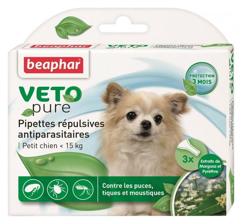 Краплі Беафар Veto Pure Spot від бліх, кліщів та комарів для собак до 15 кг, біологічно натуральні.