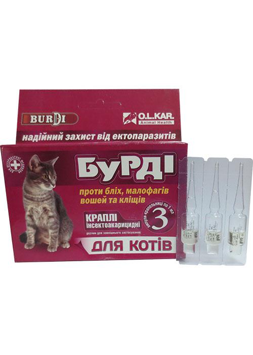 Краплі Бурди від бліх та кліщів для кішок №3 з перметрином
