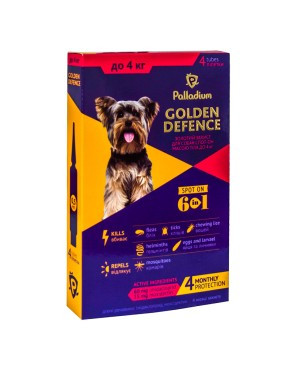Краплі на холку Golden Defence (Голден дефенс) від паразитів для собак вагою до 4 кг 1 піпетка Palladium