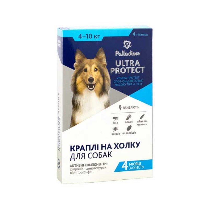 Краплі на холку Ultra Protect (Ультра протект) від бліх, кліщів і комарів для собак вагою 4-10 кг Palladium