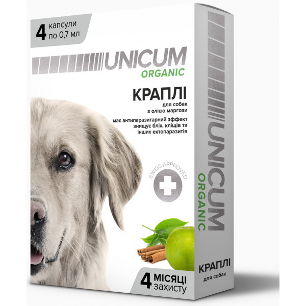 Краплі на натуральній основі Unicum Organic (Унікум Органік) для відлякування бліх та кліщів для собак 4 капсули