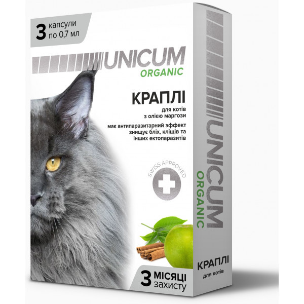 Краплі UNICUM ORGANIC (Унікум органік) від бліх та кліщів для кішок (3 капсули)