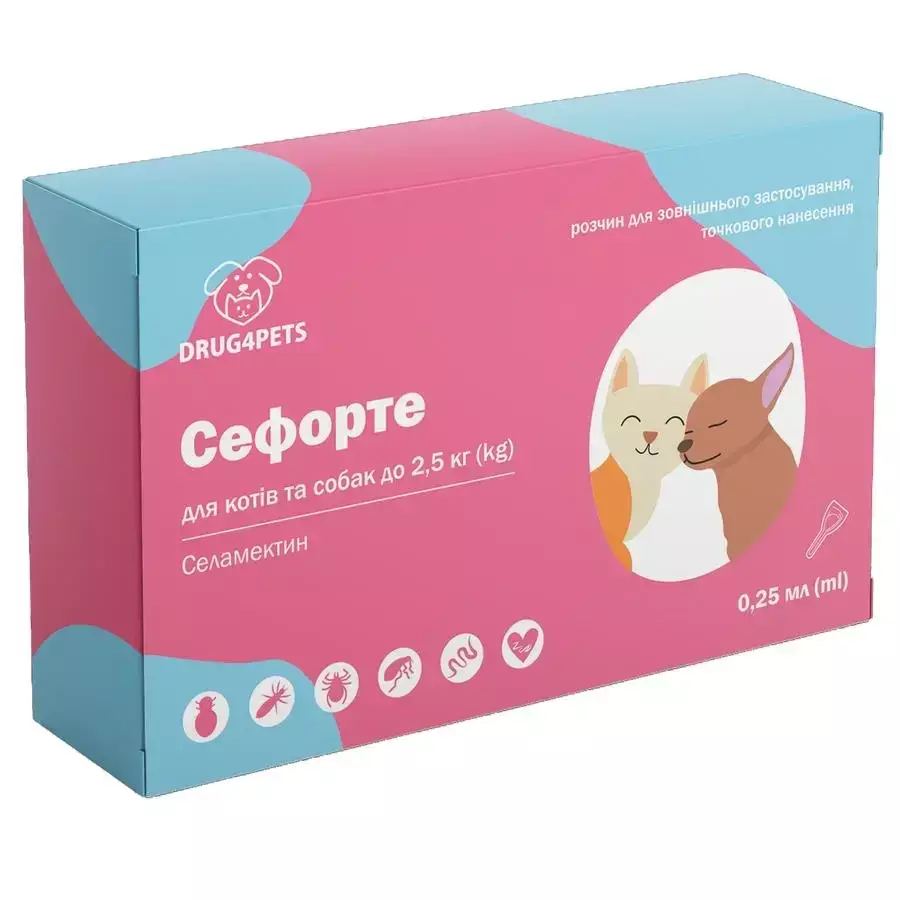 Краплі від бліх і кліщів Сефорте для котів і собак вагою до 2.5 кг (0.25 мл 1 піпетка)