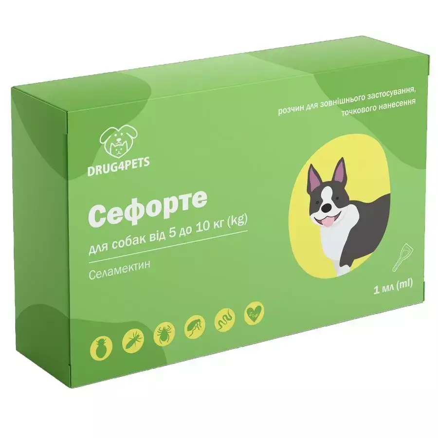 Краплі від бліх і кліщів Сефорте для собак вагою від 5 до 10 кг (1 мл 1 піпетка)