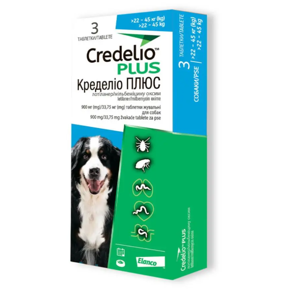 Кределіо ПЛЮС від бліх кліщів і гельмінтів №1 таблетка для собак вагою 22 - 45 кг Elanco
