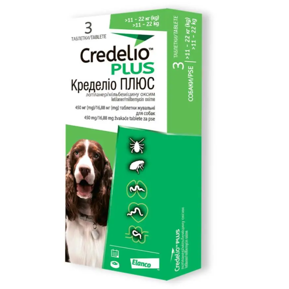 Кределіо ПЛЮС 450 мг/16,88 мг таблетки жувальні для собак масою тіла (>11 - 22 кг)