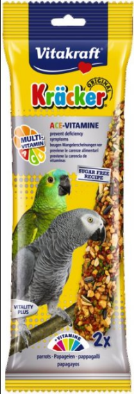 Крекер для великих папуг мультивітамін. Мультивітамінний крекер є не лише смачною, а ще й корисною добавкою до корму. Містить вітамін А, С і Е і запобігає недоїданню. Не містить цукру. Підтримує оптимальний стан великих папуг і задовольняє їх потребу у сточуванні дзьоба. Виготовлений за унікальною технологією триступеневого запікання і не містить цукру. В упаковці 2 крекери.