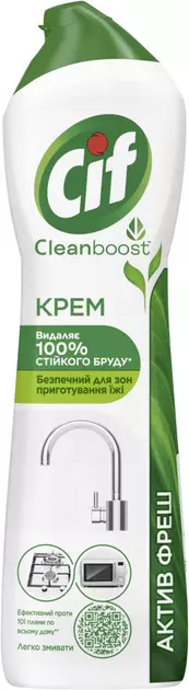 Завдяки унікальній формулі з особливими мікрогранулами, крем Cif ефективно впорається з найскладнішими забрудненнями, не пошкоджуючи поверхню й не залишаючи на ній подряпин.