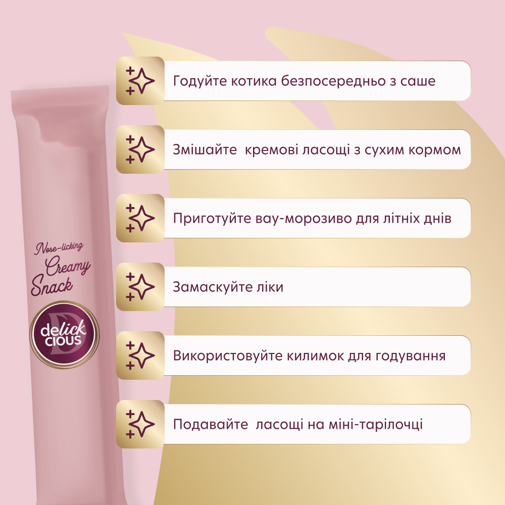 Крем-снеки для котів Делікшес Delickcious курка з додаванням ананасу ласощі для котів (4 шт х 15 г)