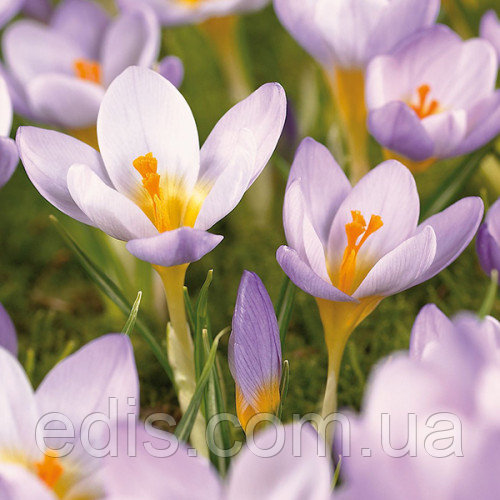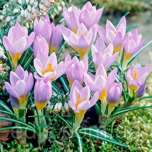 Крокус Ботанічний Firefly (Світлячок) Чарівно виглядають у ландшафтному дизайні при посадці на передньому плані чагарників, навколо дерев та в альпінаріях. Вирощування як у відкритому ґрунті, так і в горщиках. висота до 10 см; листя тонке з видимими прожилками, темно-зеленого кольору; квітки шестипелюсткові, спрямовані вгору, ніжного бузкового кольору, підсвічуються біля основи широкою плямою золотисто-жовтого та білого кольору; період цвітіння з березня до квітня; тривалість цвітіння становить 8-10 днів; сорт стійкий до хвороб та шкідників. Особливості посадки та догляду за крокусом ботанічним Фаєрфлай: посадку ботанічного крокусу проводять з вересня по листопад; росте на повному сонці, на легких, піщаних, помірно-родючих і добре дренованих ґрунтах, багатих на поживні речовини; ґрунт для посадки готують заздалегідь - її рихлять, потім вносять компост; оптимальна глибина посадки – 5 см; регулярно видаляйте бур'яни із ґрунту навколо рослини; після висаджування необхідно зробити полив; при дуже холодних зимах необхідно викопувати цибулини; крокус розмножується розподілом гнізд, що розрослися, бульбоцибулин в осінній період.