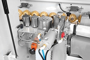 Базовая комплектацияДиск для рулонного кромочного материалаКонвейер подачи заготовок с пластиковыми накладкамиКлеевой бачок с тефлоновым покрытием и устройством регулирования температурыПанель управления температурой клеевого бачкаУзел предварительной фрезеровки торца детали (прифуговка)Устройство автоматической подачи кромочного материала с пневматическим ножом для предварительной обрезкиРоликовый прижимной блок с первым приводным роликомУзел чистовой торцовки с двумя пильными дискамиДва фрезерных узел для снятия свесов кромочного материала по толщине (верх, низ)Циклевочный узел с радиусными ножамиУзел удаления клея (клеевой скребок) с очисткой сжатым воздухом (обдув)