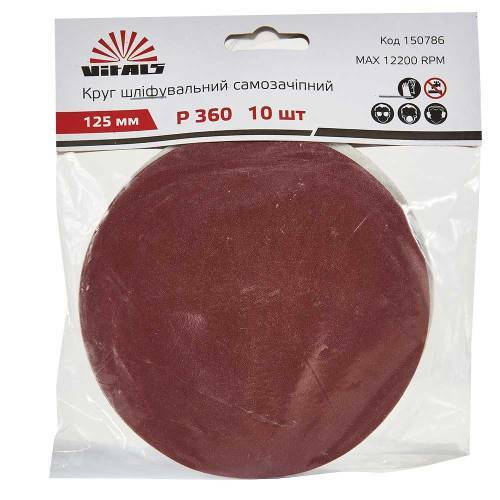 Опис круг шліфувальний самозачіпний Vitals 125 мм з. 360, 10 шт
