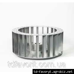 Крыльчатка радиального типа для вентилятора Turbo DE 2501/3 F изготовлена с стали толщиной 2 миллиметра и окрашена полимерной краской серого цвета. Крыльчатка имеет 24 вперед загнутых лопасти толщиной 1.2 миллиметра.