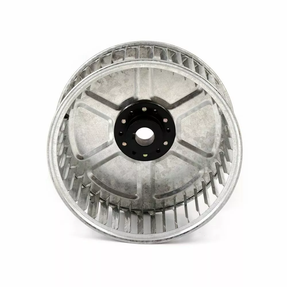 Крыльчатка имеет радиальный принцип работы который при перемещении воздуха изменяет его направление. Изготовлена крыльчатка из оцинкованной стали ,  лопасти загнуты вперед что делает ее более производительной.