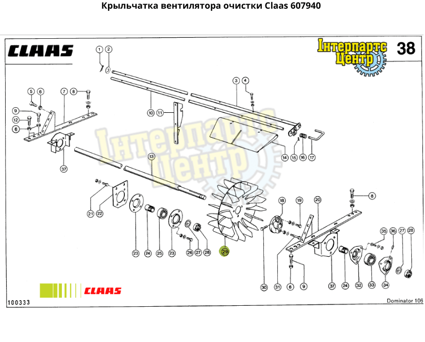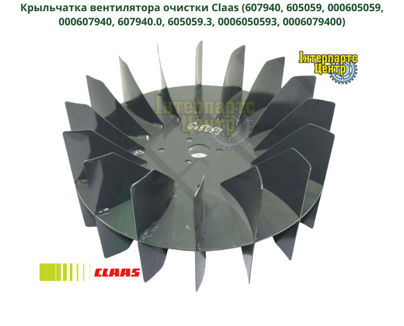 Крильчатка вентилятора очищення Claas 607940, 605059, 000605059, 000607940, 607940.0, 605059.3, 0006050593, 0006079400