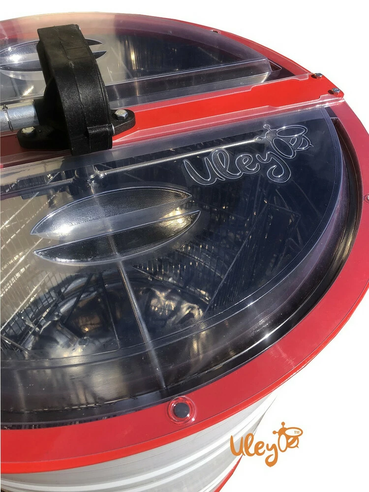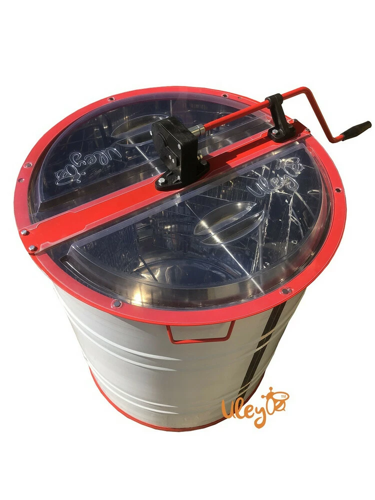 Дана кришка на медогонку виготовлена з щільного харчового пластику, товщиною 0,8 мм Складається з двох половинок, має виїмки ручки для зручного використання. Кріпиться до баку медогонки за рахунок спеціальних магнітів, щільно прилягає і забезпечує пасічнику комфортні умови при відкачуванні меду. Підходить для медогонок з ручним і електричним приводом.