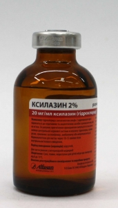 Ксилазин 2% – седативный лекарственный препарат группы производных тиазина. Болеутоляющее действие сохраняется у крупного рогатого скота до 45 мин., у мелких животных – от 15 до 30 мин., у лошадей продолжительность варьируется от 5 до 20 мин. Миорелаксационное действие у животных наступает через 20-50 минут после введения препарата. Состав: Препарат в качестве действующего вещества в 1 мл содержит ксилазина гидрохлорид – 20 мг. Показания: Ксилазин 2% назначают сельскохозяйственным животным, собакам и кошкам с целью успокоения, обезболивания и миорелаксации при проведении клинического осмотра, рентгенологических исследований, для обездвиживания беспокойных и агрессивных животных, в том числе во время транспортировки; в качестве средства премедикации при оперативных вмешательствах, болезненных манипуляциях, а также для местной и общей анестезии. Дозировка и способ применения: Ксилазин 2% вводят животным парентерально. В зависимости от способа введения дозы препарата и вида животного наблюдается седация и миорелаксация разной степени: 0,25 мл на 100 кг массы животного – легкий седативный эффект. Применяют для успокоения животного. 0,5 мл на 100 кг массы животного – умеренная седация. Применяют для проведения клинических исследований, малых хирургических вмешательств, преимущественно в комбинации с местной анестезией. 1 мл/кг массы животного – выраженные седация. Применяют для длительных хирургических вмешательств с возможным дополнением местной или общей анестезией. 1,5 мл на 100 кг – глубокая седация. Применяют только взрослым животным после предварительной голодной диеты при очень болезненных и продолжительных операциях и при родовспоможении. КРС: 0,25-1,5 мл на 100 кг массы животного (0,05-0,3 мг ксилазина гидрохлорида на 1 кг массы животного). Лошадям: внутривенно струйно медленно, в дозе 2,5-5,0 мл на 100 кг массы животного (0,5-1,0 мг ксилазина гидрохлорида на 1 кг массы животного). Собакам при проведении манипуляций, не сопровождающихся болевыми проявлениями, Ксилазин 2% вводят внутримышечно, кошкам – внутримышечно или подкожно в дозе 0,05-0,10 мл/кг (1-3 мг ксилазина гидрохлорида на 1 кг массы животного). Специфическими антидотами ксилазина гидрохлорида являются блокаторы альфа-адренорецепторов – Йохимбин, Толазолин или Атипамезол, которые применяют животным в соответствии с инструкциями. Форма выпуска: Раствор для инъекций. Препарат выпускают расфасованными по 50/30 мл в стеклянные или пластиковые флаконы. Производитель: «Алфасан Интернэшнл БВ» («Alfasan International B.V»), Нидерланды