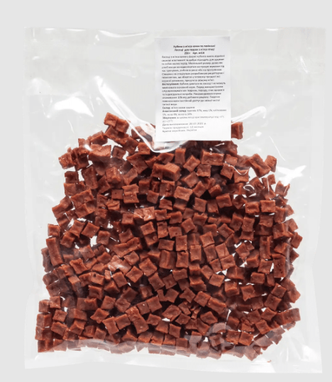 Ласощі з м'яса качки у формі кубиків мають відмінні смакові властивості та добре підходять для цуценят та собак малих порід. Маленький розмір дозволяє улюбленцю не відволікатися на процес жування під час тренувань, роботи в ринзі або при прогулянках. Створено за спеціально розробленою рецептурою і технологією, що зберігає у готовому продукті всі корисні речовини, присутні в свіжому м’ясі.