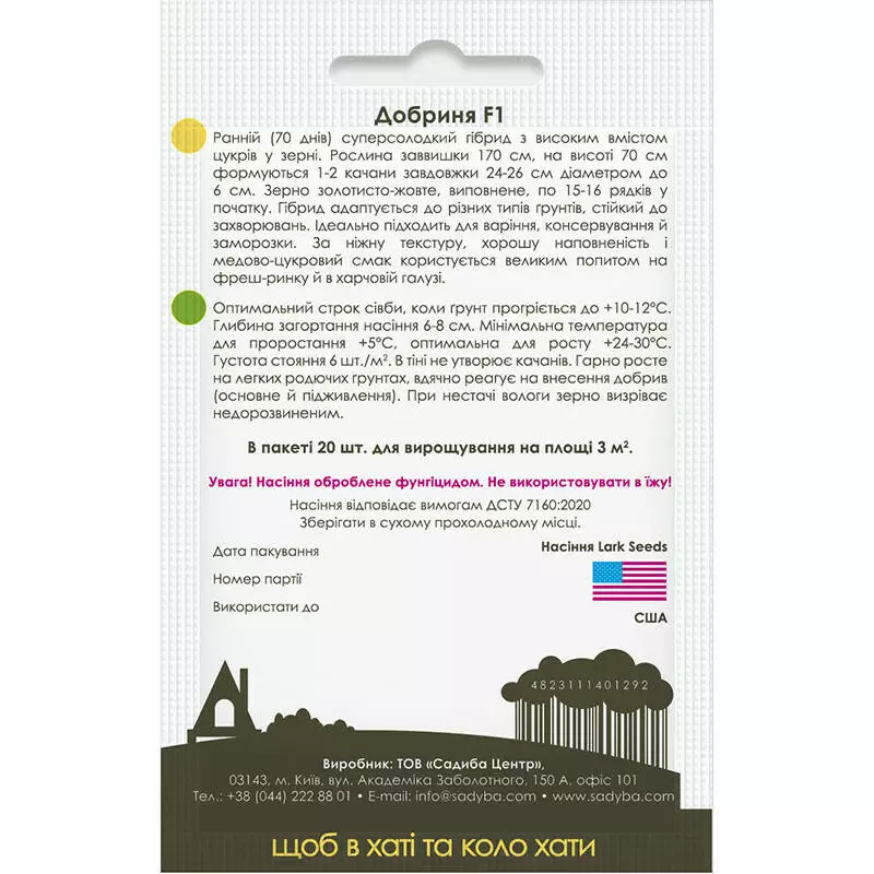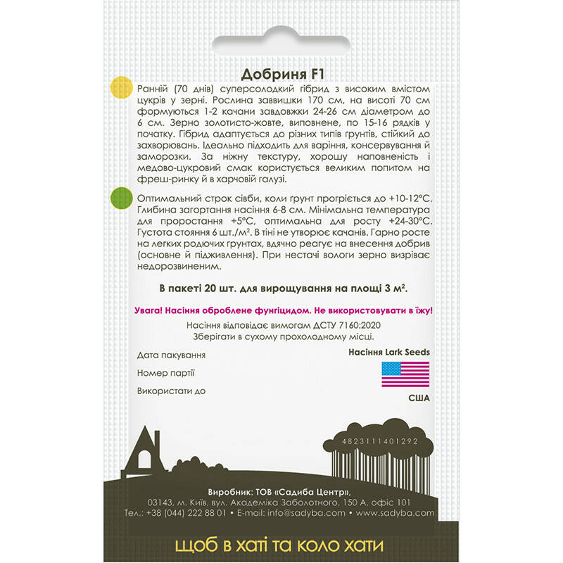 Кукурудза Добриня F1, 20 шт, Садиба Центр