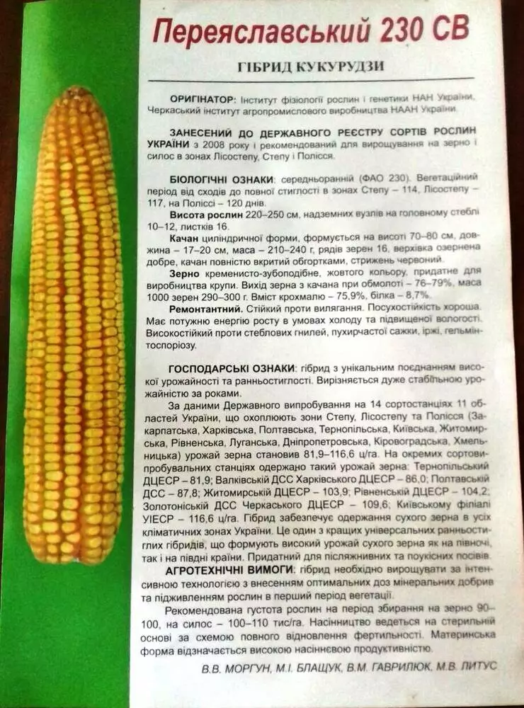 ГІБРИД КУКУРУДЗИ ПЕРЕЯСЛАВСЬКИЙ 230 СВ