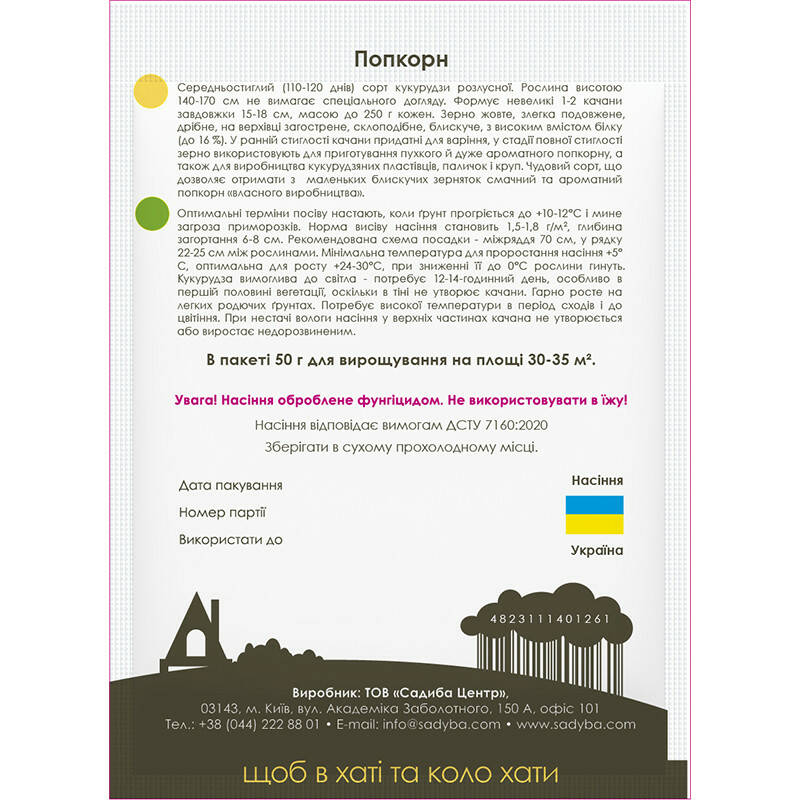 Рослина формує по 2 - 3 циліндричних початки. Насінини маленькі, жовтого кольору з характерними зазубринками. При нагріванні зерна розтріскуються і утворюють м'який, ароматний, смачний попкорн. Кукурудза - теплолюбна рослина, її насіння проростає при 8 - 10 °С. Сходи появляються при температурі не нижче 10 - 12 °С.