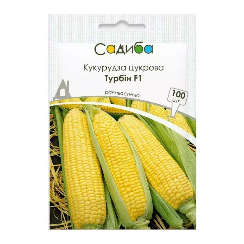 Турбін F1 – дуже ранній гібрид суперсолодкої кукурудзи. Вегетаційний період 70-72 дні. Рослини міцні, збалансовані, висотою 170-175 см. Формує качани завдовжки 20-22 см, відмінно вкриті покривними листочками. Діаметр качана 5,0-5,5 см, має по 16-18 рядів зерен. Відмінний солодкий смак, висока товарність. Гібрид підходить як для отримання ультраранньої продукції, так і вирощування в конвеєрі. При вирощуванні суперсолодкої кукурудзи обов’язково потрібно дотримуватись просторової ізоляції від зернової та цукрової!