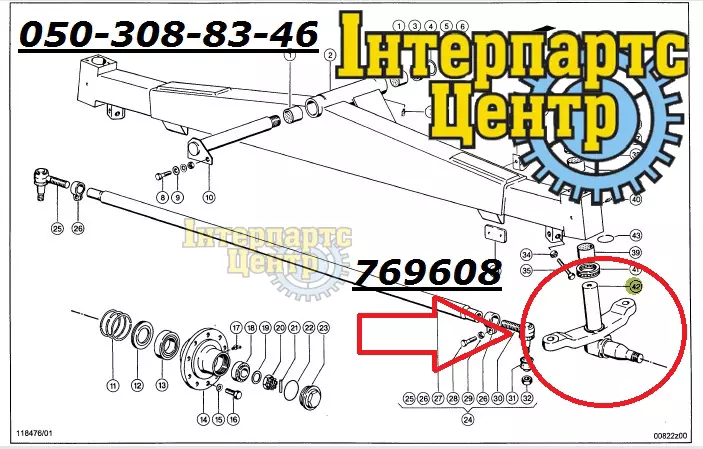Кулак поворотний Аналог Claas, артикул 769608,0007696083,00 0769 608 3, Застосовується для техніки виробництва Claas