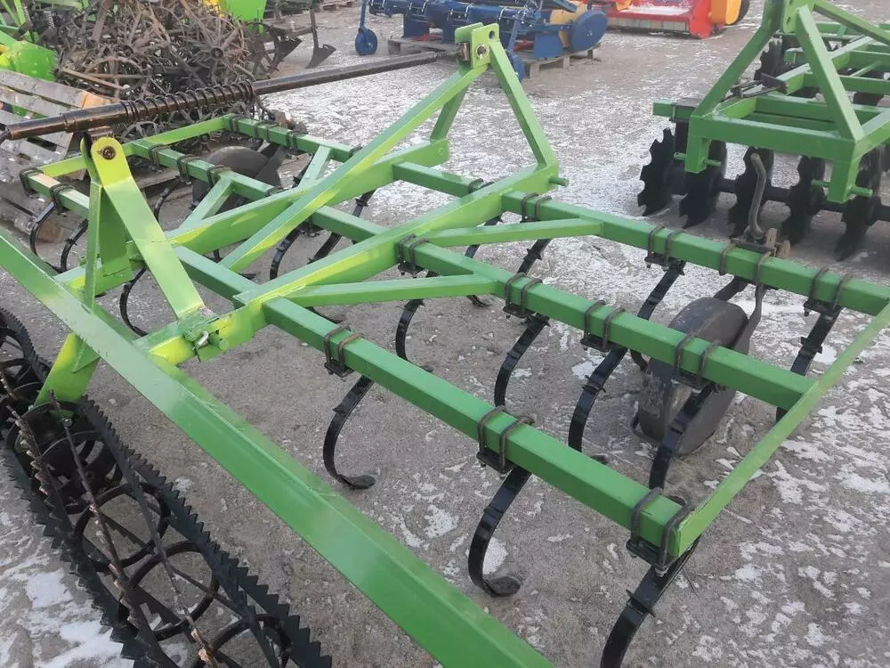 В предложении доступны культиваторы с креплением пружинных стоек при помощи устанавливаемых накладок. Стойки культиватора креплятся на раме в 3 ряда на расстоянии 140 мм и окончены легко заменяемыми рыхлительными долотами. Основным оборудованием культиваторов являются два опорные колеса, устанавливающие глубину работы.