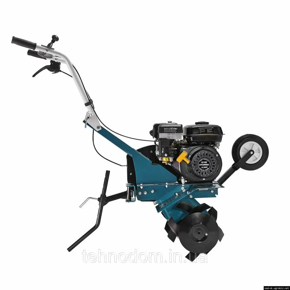 Весьма компактный, но в то же время производительный культиватор, который может продемонстрировать отличные результаты работы как на больших открытых площадях, так на закрытых участках в стеснительных условиях. Есть специальное колесо для удобства транспортировки, высота расположения ручки регулируется пользователем. В основе рабочего инструмента находится 4 фрезы, максимальная ширина обработки составляет 60 см. В конструкции также предусмотрено ограждение для растений. Мощность двигателя – 4000 Вт, в качестве топлива используется бензин.