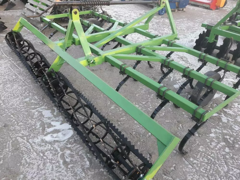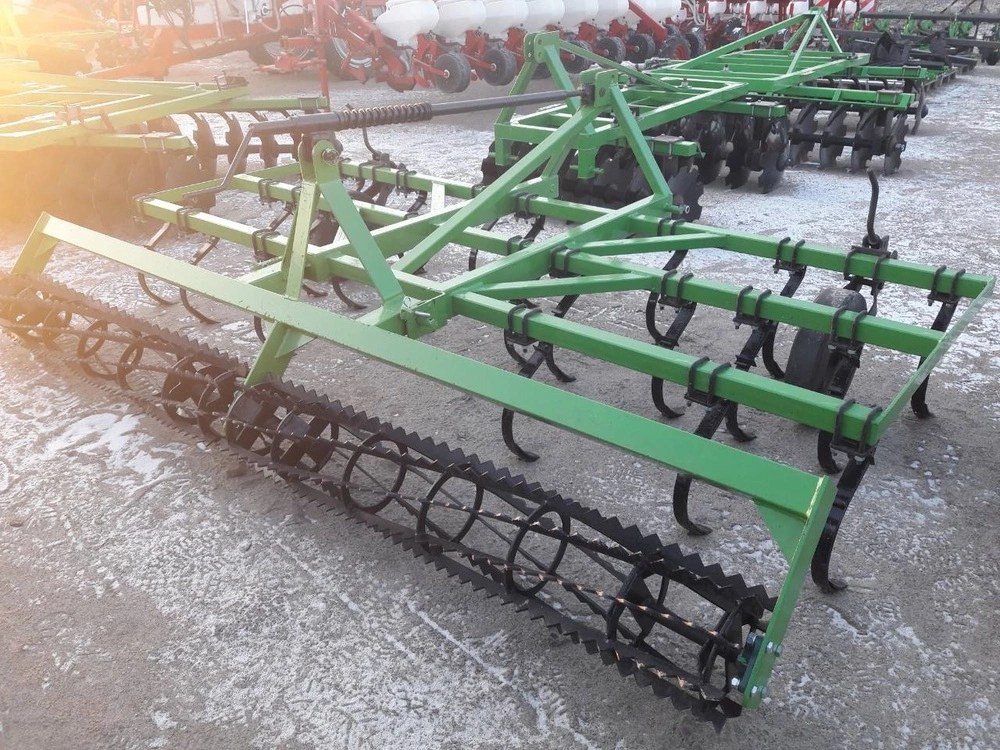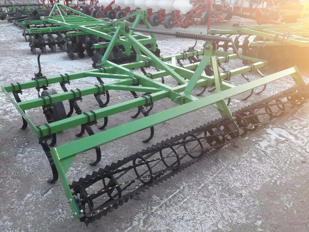 В предложении доступны культиваторы с креплением пружинных стоек при помощи устанавливаемых накладок. Стойки культиватора креплятся на раме в 3 ряда на расстоянии 140 мм и окончены легко заменяемыми рыхлительными долотами. Основным оборудованием культиваторов являются два опорные колеса, устанавливающие глубину работы.