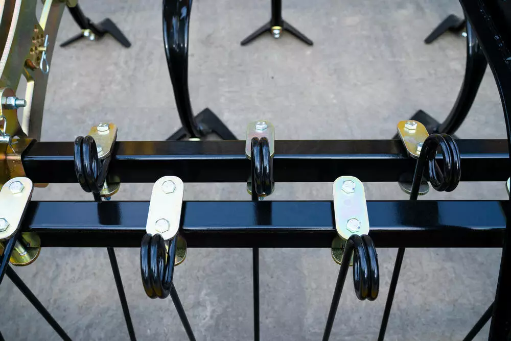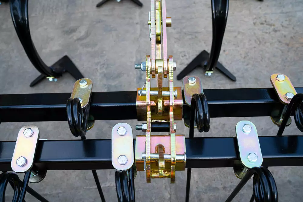 Культиватор оснащений S-подібною стійкою з лапою, яка створює пружне коливальне навантаження під час руху, забезпечуючи якісне розпушування та подрібнення верхнього шару ґрунту. Геометрія стійки сприяє стабільному входженню лапи в ґрунт, що дозволяє підтримувати задану глибину обробки. Конструкція забезпечує рівномірне навантаження на робочі органи, знижує ризик забивання у вологих умовах та підтримує рівномірну роботу по всій ширині захвату.
