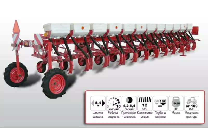 Жорстка паралелограмна підвіска секцій робочих органів виключає пошкодження посівів і забезпечує копіювання рельєфу ґрунту.