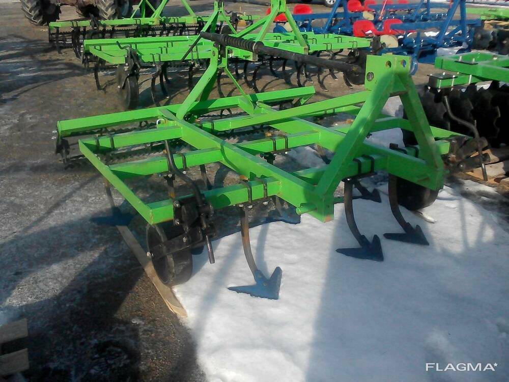 В предложении доступны культиваторы с креплением пружинных стоек при помощи устанавливаемых накладок. Стойки культиватора крепятся на раме в 3 ряда на расстоянии 140 мм и окончены легко заменяемыми рыхлительными долотами. Основным оборудованием культиваторов являются два опорные колеса, устанавливающие глубину работы.