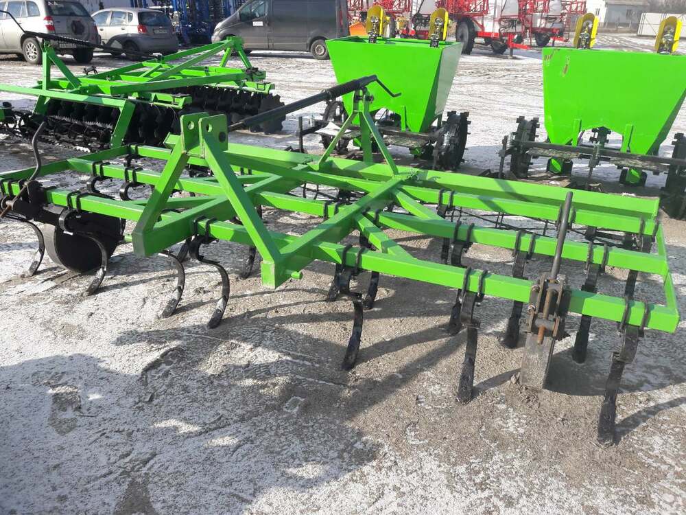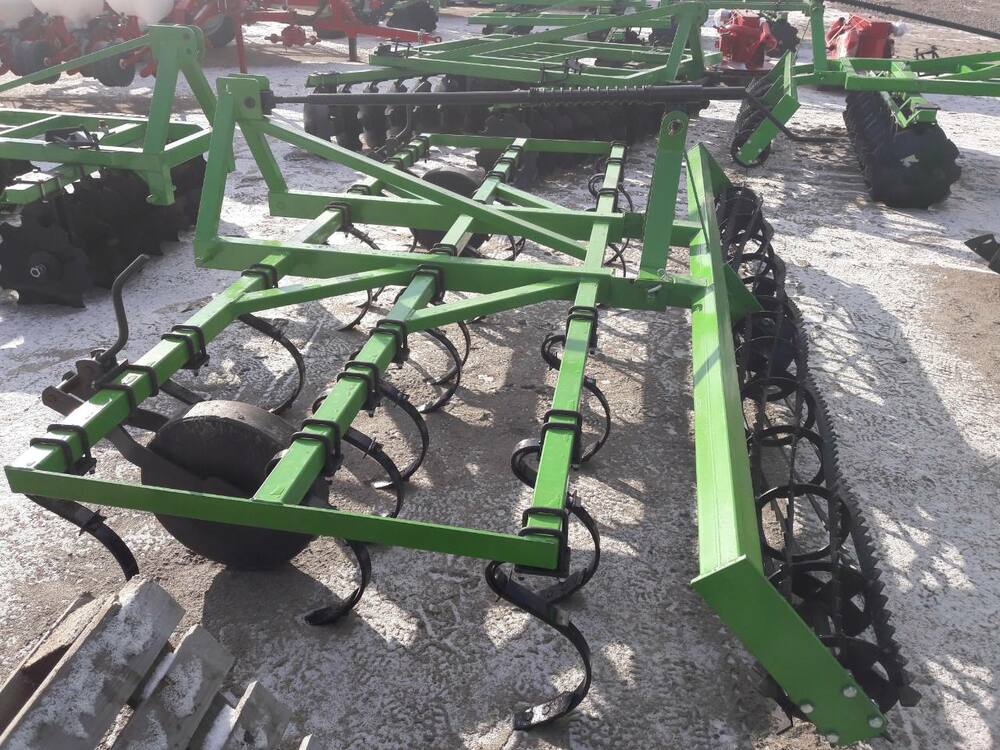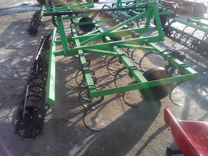 В предложении доступны культиваторы с креплением пружинных стоек при помощи устанавливаемых накладок. Стойки культиватора креплятся на раме в 3 ряда на расстоянии 140 мм и окончены легко заменяемыми рыхлительными долотами. Основным оборудованием культиваторов являются два опорные колеса, устанавливающие глубину работы.