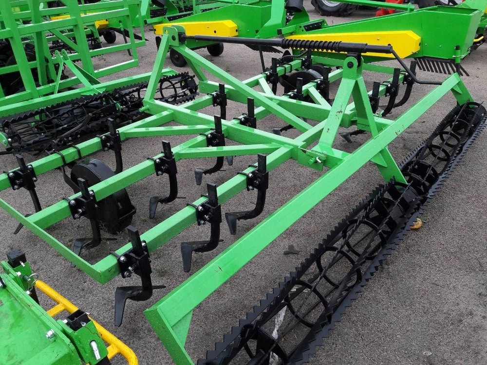 В предложении доступны культиваторы с креплением пружинных стоек при помощи устанавливаемых накладок. Стойки культиватора креплятся на раме в 3 ряда на расстоянии 140 мм и окончены легко заменяемыми рыхлительными долотами. Основным оборудованием культиваторов являются два опорные колеса, устанавливающие глубину работы.