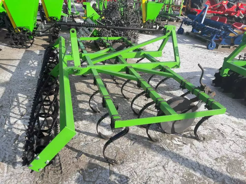В предложении доступны культиваторы с креплением пружинных стоек при помощи устанавливаемых накладок. Стойки культиватора креплятся на раме в 3 ряда на расстоянии 140 мм и окончены легко заменяемыми рыхлительными долотами. Основным оборудованием культиваторов являются два опорные колеса, устанавливающие глубину работы.