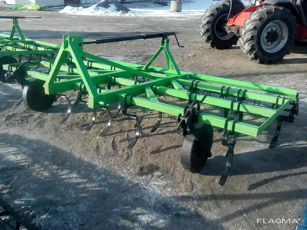 В предложении доступны культиваторы с креплением пружинных стоек при помощи устанавливаемых накладок. Стойки культиватора крепятся на раме в 3 ряда на расстоянии 140 мм и окончены легко заменяемыми рыхлительными долотами. Основным оборудованием культиваторов являются два опорные колеса, устанавливающие глубину работы.