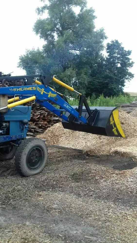 Фронтний навантажувач "Hermes" універсальний предназначений для навантаження різних сільськогосподарських вантажів (сіна, соломи, хв. Удобрений, піску и т.п.) в транспортні засоби, машини для внесення удобрений на вищу відстань. Для перевезення и укладання в скірди рулонів и копен сена, соломы.