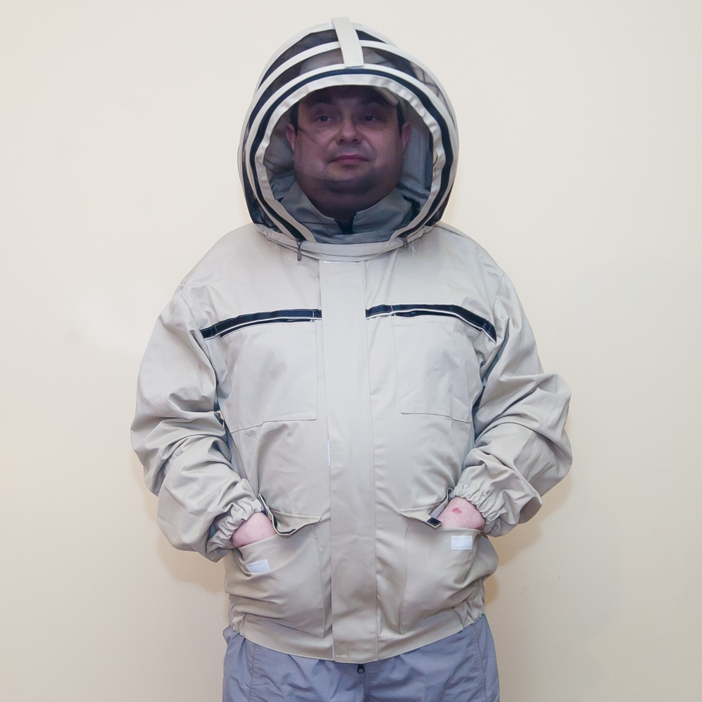 Куртка призначена для захисту пасічника від укусів бджоли. Однією з переваг даної куртки є те, що вона виготовлена з натурального матеріалу - котону, що забезпечить комфортні умови роботи для пасічника.Дана куртка оснащена замком та резинкою для стягування на манжетах, що мінімізує ризик потрапляння бджоли в середину та ймовірність її укусу. "ЄВРО"-шапка, що входить в комплект до куртки забезпечує додаткову зручність у роботі.