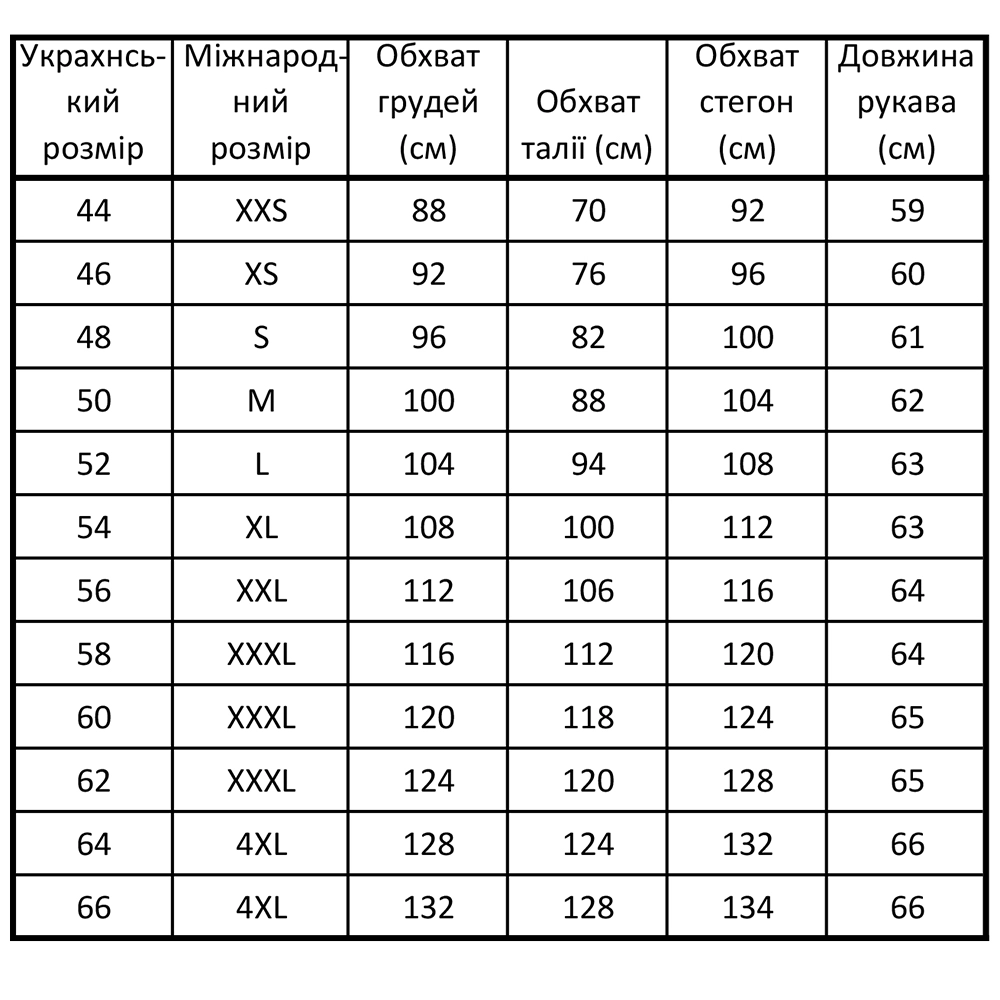 Розміри: 50, 52, 54, 56, 58, 60