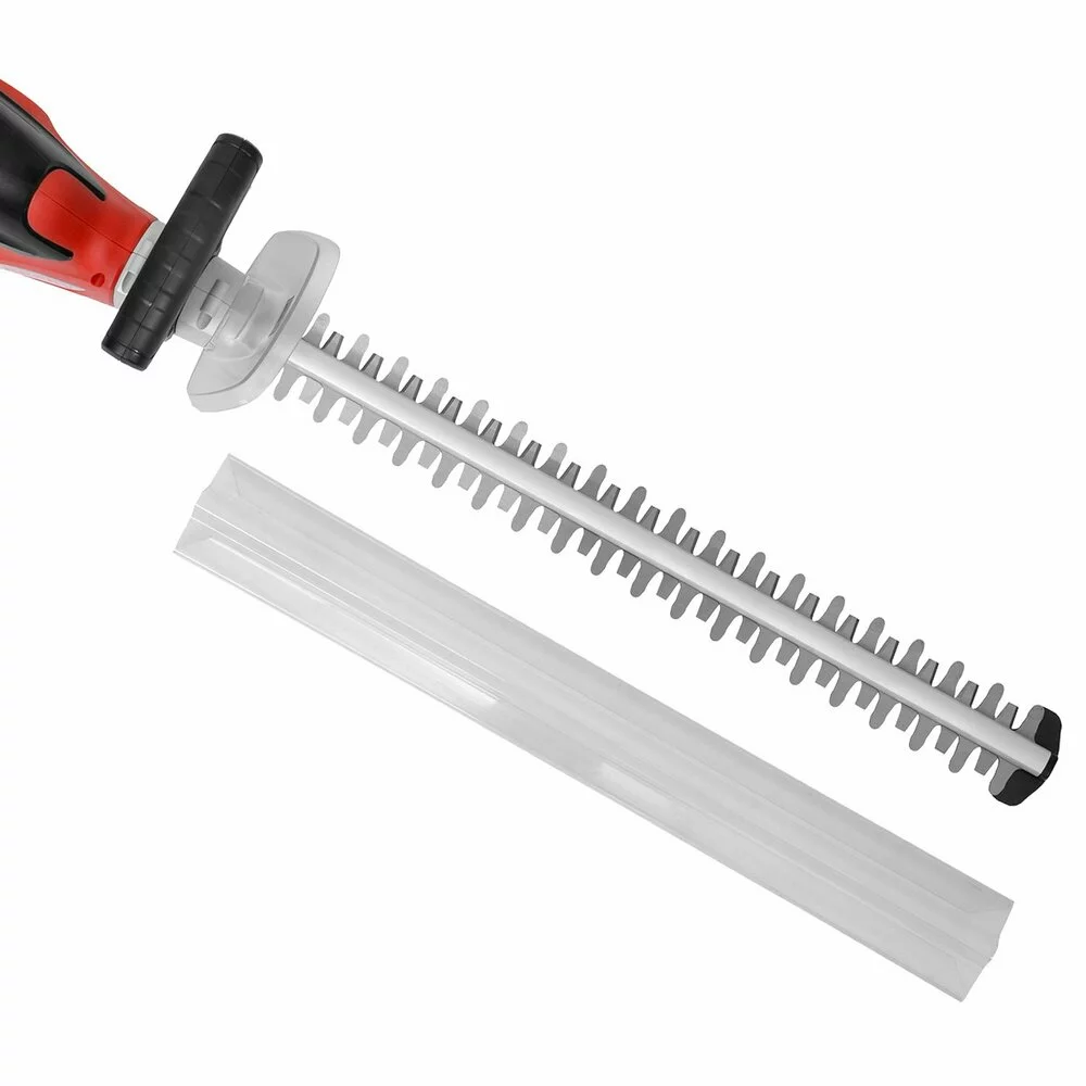 У комплект входить кришка напрямної шини, яка дозволяє зберігати кущоріз між використанням. Захист від порізів гарантує, що ваші руки не будуть пошкоджені. Проте, захисний одяг і захисні окуляри при обрізанні живоплоту необхідні.