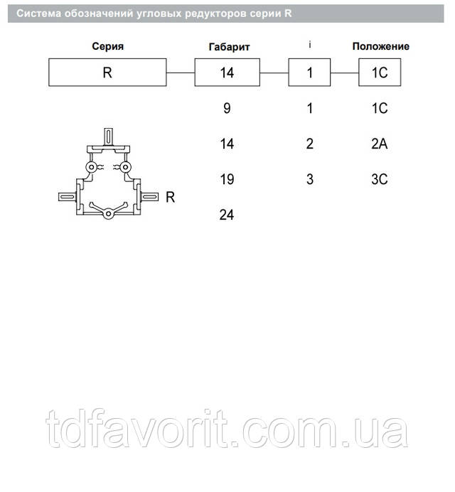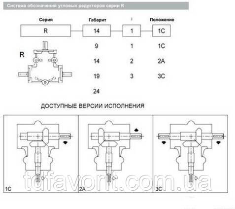 Угловой конический редуктор данной серии имеет следующие типоразмеры: